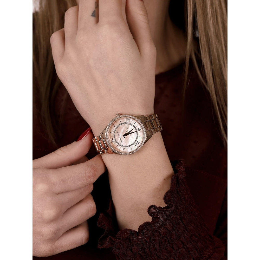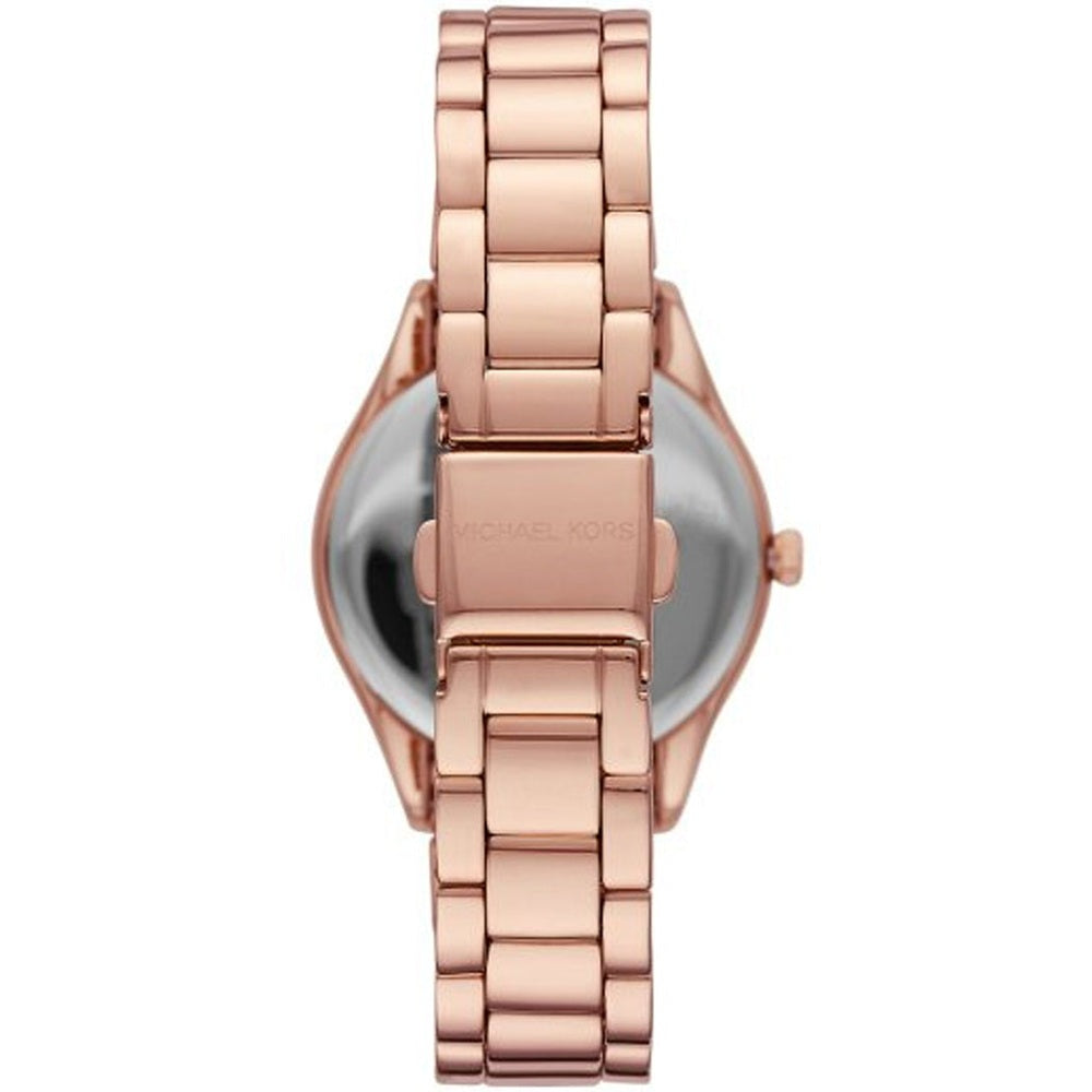 La Montre Michael Kors Lauryn est une création élégante et chic qui allie perfectionnement des lignes délicates et des accents exclusifs. Ce modèle féminin est équipé d'un boîtier et d'une chaîne en acier inoxydable avec une finition en or rose, d'un verre minéral et d'un cadran en nacre claire avec des chiffres romains et des cristaux incrustés. La montre est alimentée par un mouvement quartz fiable et possède une résistance à l'eau de 5 ATM, ce qui la rend parfaite pour un usage quotidien. Le design sophistiqué et les fonctionnalités pratiques de cette montre en font un accessoire parfait pour les femmes qui cherchent à ajouter un touch de classe à leur tenue quotidienne.