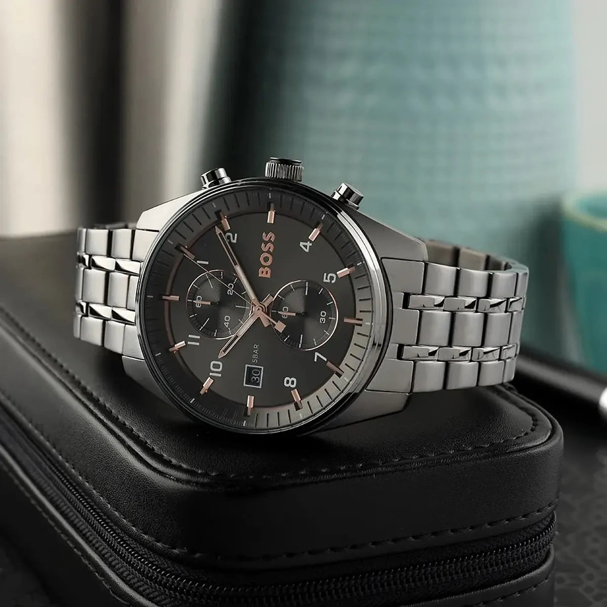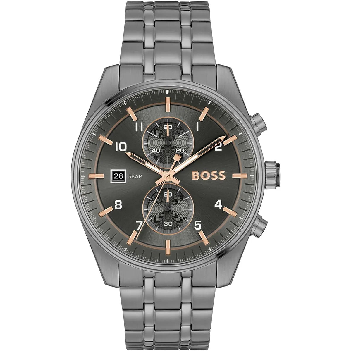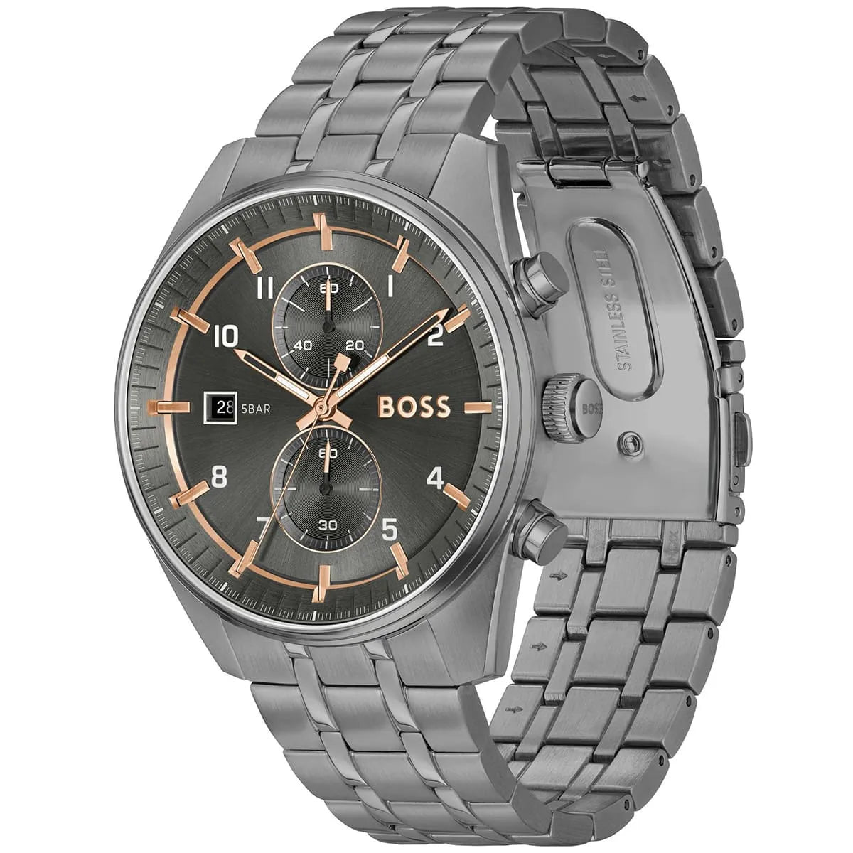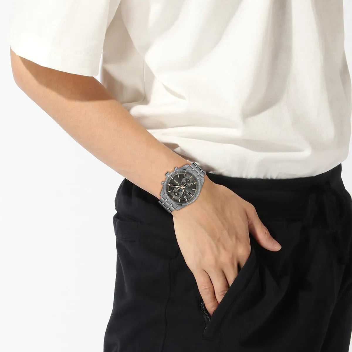 Cette montre Hugo Boss de la collection Skytraveller incarne l'élégance contemporaine pour l'homme moderne. Son boîtier robuste en acier inoxydable gris de 44 mm abrite un cadran sophistiqué doté d'une fonction chronographe précise. Le bracelet assorti en métal assure une durabilité exceptionnelle et un confort optimal au quotidien. Animée par un mouvement à quartz fiable, elle offre une résistance à l'eau jusqu'à 50 mètres. Son design raffiné aux finitions brossées s'adapte parfaitement aux tenues formelles comme décontractées. Ce garde-temps allie fonctionnalité technique et esthétique haut de gamme caractéristique de la marque.